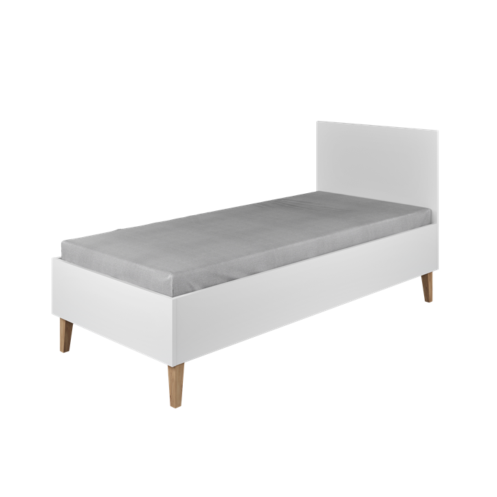 KUBI sengen med et soveområde på 80x180 vil være et godt valg for et yngre såvel som et ældre børneværelse på grund af dens moderigtige skandinaviske stil og universelle farver. Den præsenterede seng er et produkt lavet af materialer af høj kvalitet. Sengens struktur er forstærket med specielle fastgørelseselementer, som gør den solid og meget holdbar. Der er brugt 18 mm mat MDF-plade til at lave sengen, og sengens ben er lavet af lakeret, massiv eg. Sengen i sættet har en ramme med fjedrende lameller af resiniseret birketræ. Den maksimale belastning på sengen er 100 kg, takket være hvilken forælderen nemt kan lægge sig ned ved siden af barnet for at hjælpe det med at falde i søvn. KUBI sengen sælges uden madras, og størrelsen på den madras, der passer til sengen, er 80x180 cm, med en maksimal højde på op til 20 cm. Sengen tilhører KUBI møbelkollektionen, takket være hvilken det er muligt at indrette et børneværelse med moderigtige og funktionelle møbler.