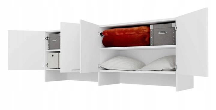 Vægskab, som gør en skabsseng til en fantastisk vægenhed, er faktisk en lukket bogreol med fire hylder. Den kan erstatte en garderobe eller en kommode og byder på ekstra opbevaringsplads. Funktionelt, hængende overskab med fire klapper, der suppleres med CP-05 vægseng. Vi opbevarer meget i et rummeligt skab og åbne udsparinger. Overskabe med en skabsseng vil skabe en interessant, moderne løsning ved at bruge vægoverfladen og spare plads i interiøret.