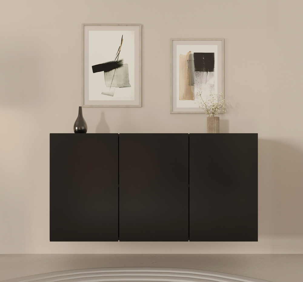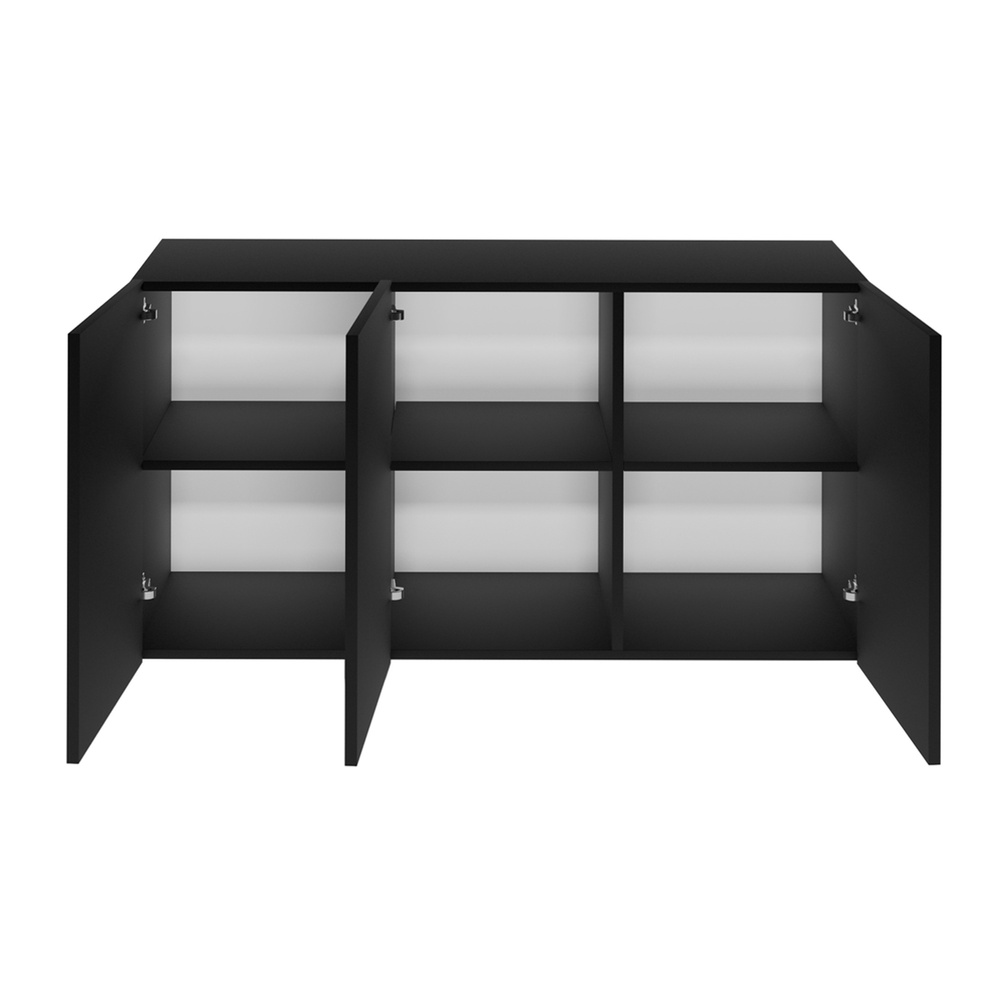 Den store tredørs kommode Dallas er et forslag til folk, der ønsker at slippe af med rod for altid og samtidig have et smukt og interessant interiør. Bag de elegante fronter er der et yderst rummeligt rum med seks rummelige hylder. Dette giver dig god plads til at opbevare forskellige ting, hvilket er med til at holde rummet pænt. Kommoden har plads til dokumenter, en samling af bøger eller film, service til særlige lejligheder, og ved at placere den i hallen får du plads til opbevaring af vintertøj eller sko. Det minimalistiske design får møblerne til at se yderst stilfulde ud, og egner sig ikke kun til stuen, men også til soveværelset, gangen eller gæsteværelset. Den sorte hængende kommode tilføjer elegance, som også gør det nemmere at matche den til forskellige arrangementer. At hænge kommoden på væggen sparer ikke kun plads, men gør det også nemmere at holde rent under møblerne. Kommoden er lavet af slidstærk 18 mm tyk lamineret spånplade, og kan monteres på væggen ved hjælp af specielle møbelophæng.