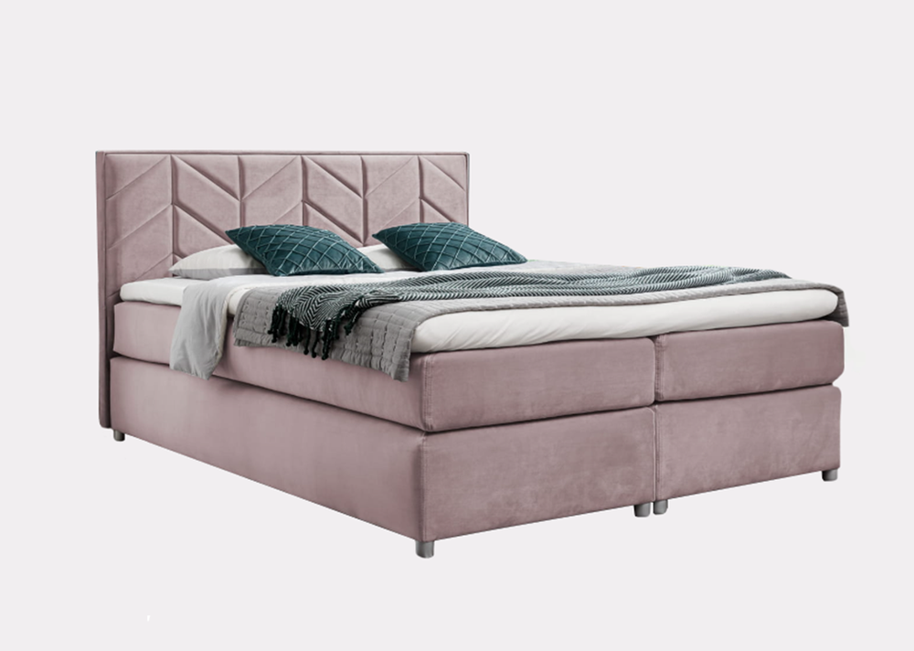 SERINA er en seng i en moderne form, der vil fungere i ethvert moderigtigt interiør. Den polstrede krop beklædt med et blødt velourstof ser smukt ud og vil skabe en varm og hyggelig atmosfære i dit soveværelse. Den høje sengegavl er dekoreret med geometriske sømme, der effektivt vil fange øjet og glæde alle husstandsmedlemmer og gæster. SERINA soveværelsesseng har en lagdelt struktur, der er karakteristisk for kontinentalsenge. Møbler har en stabil boksbund med lommemadras. Topmadrassen består af højelastisk skum, der regulerer temperaturen og reagerer på den mindste bevægelse. Det giver også ekstra elasticitet og blødhed, takket være hvilket det garanterer en fredelig og behagelig søvn. Sengen er ideel til par, for takket være denne konstruktion forstyrrer den ene persons bevægelse ikke den andens søvn. Det hele er baseret på slanke ben i sølvfarve.