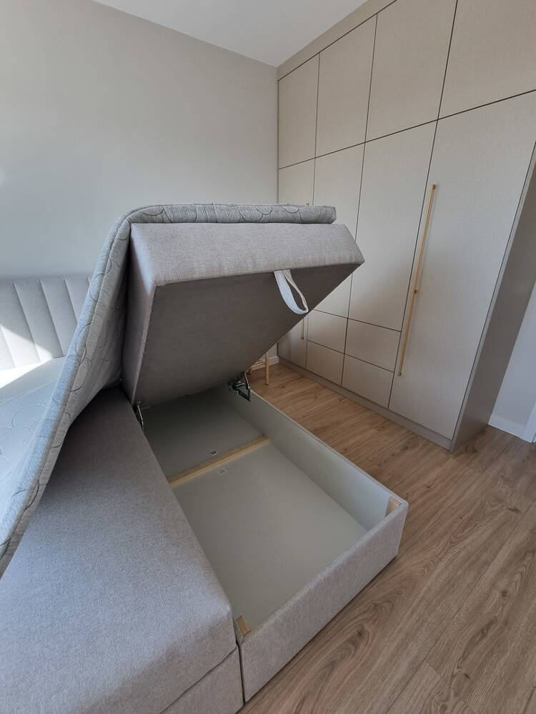 Sengebunden har ventilationshuller og ekstra forstærkning med trælameller. Beholder under sengen med en kapacitet på op til 1000 liter.