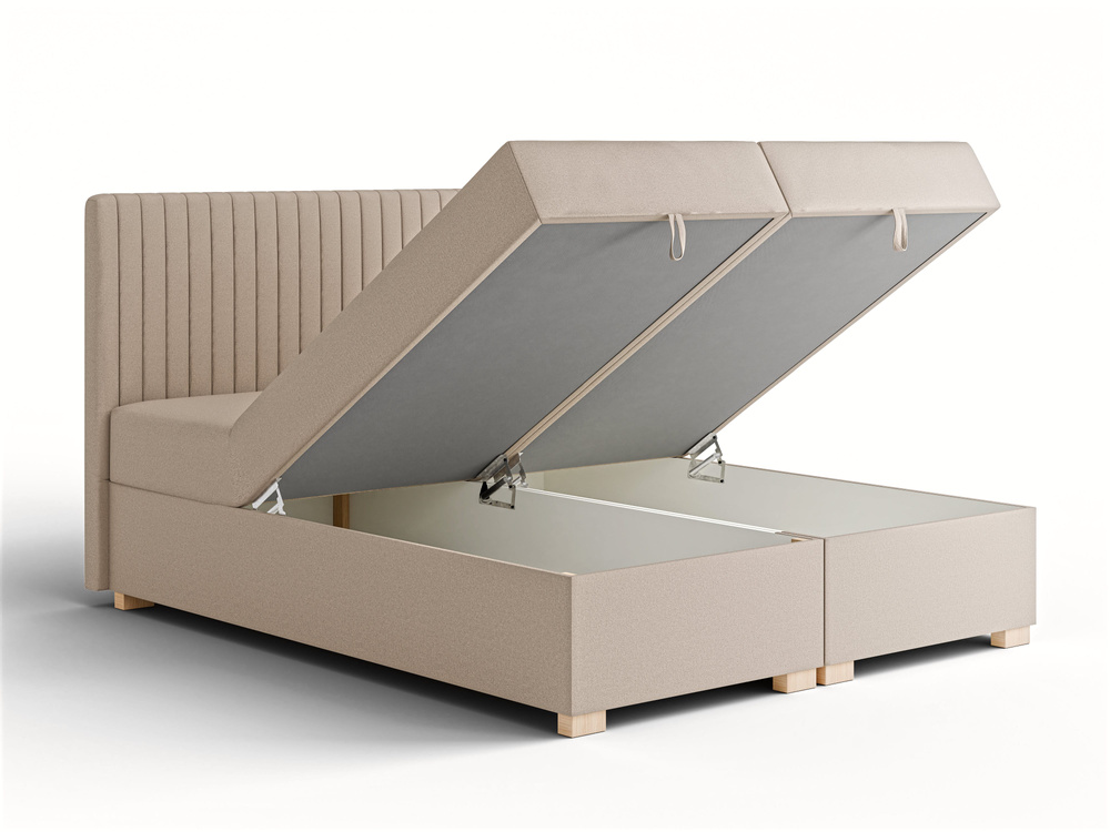 Sengebunden har ventilationshuller og ekstra forstærkning med trælameller. Beholder under sengen med en kapacitet på op til 1000 liter.