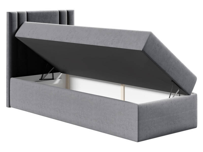 En seng med sengegavl er et tilbud til folk, der kan lide at slappe af i sengen. CARMEN MINI modellen er udstyret med en dekorativt syet nakkestøtte beklædt med blødt skum. Tag din yndlingsbog med dig, se film eller arbejd på din bærbare computer. Nakkestøtten fungerer som rygstøtte, men beskytter samtidig væggen. Sengen er udstyret med en sengebeholder. Automatiske åbningsmaskiner hjælper dig med nemt at løfte beholderne til opbevaring af sengetøj eller ekstra tæpper. Bundmadras med en højde på 20 cm, fyldt med bonell fjedre og T30 skum. Takket være denne konstruktion vil madrassen helt sikkert vinde dit hjerte med sin behagelige overflade, som samtidig vil kunne give tilstrækkelig støtte til din krop. Det sidste lag er en topmadras lavet af 5 cm højelastisk skum.