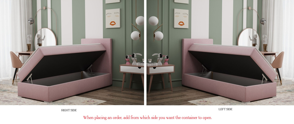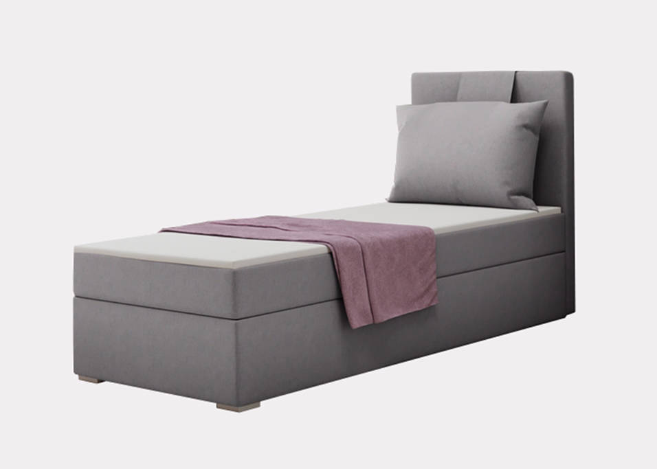 AMANDA kontinentalseng er et perfekt tilbud til en teenagers soveværelse. Det vil harmonere perfekt med moderne interiørarrangementer og gøre dit børneværelse til en oase af afslapning, komfort og fred. Simple kontinentalsenge bliver mere og mere populære takket være deres interessante udseende. AMANDA-sengen har en høj, blød sengegavl, der ligner en pude, takket være hvilken du kan læne dig tilbage om aftenen og læse din yndlingsbog uden at bekymre dig om rygsmerter. Hovedmadrassen er lavet af bonell fjedre i kombination med T25 skum. Topmadrassen er lavet af højelastisk skum med en tykkelse på 4 cm. Sengen er udstyret med en stor beholder til sengetøj og en automatisk mekanisme på fjedre, der letter åbning.