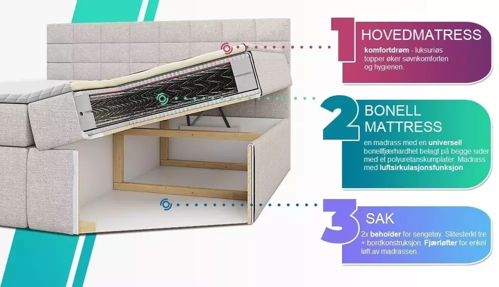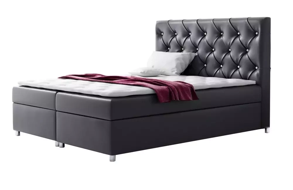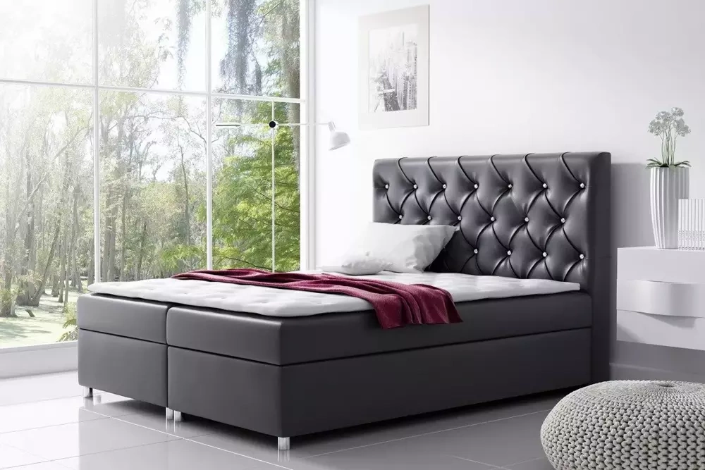 Rom er en stilfuld sort kontinentalseng. Det var lavet af materialer af høj kvalitet, der garanterer dig en sund og behagelig søvn.