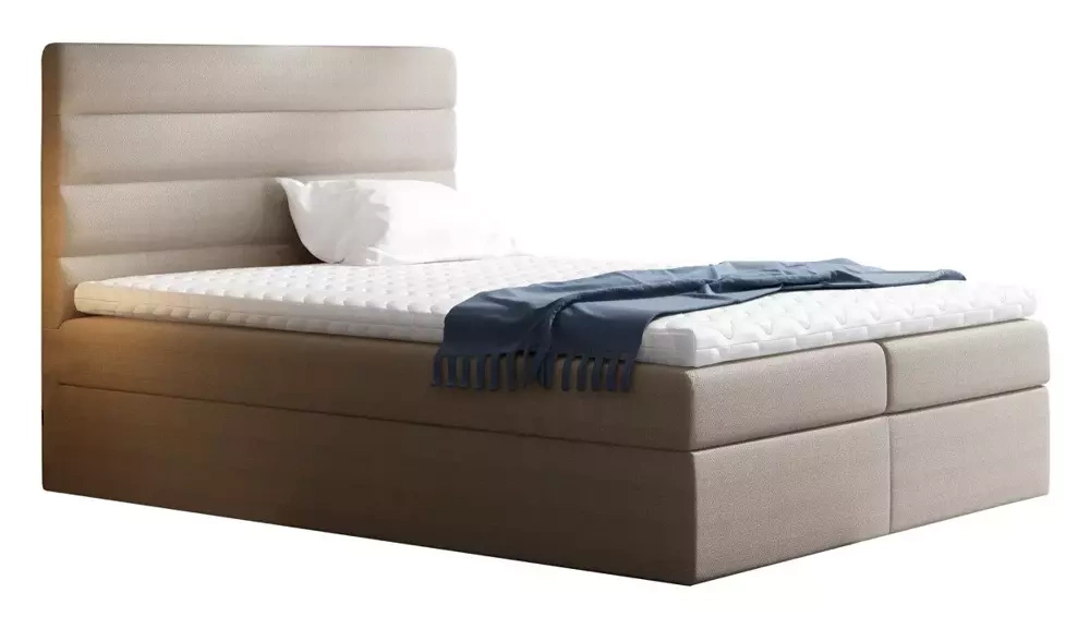 Beige kontinentalseng er en model, der består af 3 dele. Sengens bund er en polstret trækasse. Det giver strukturen stabilitet og styrke. Boksning er også en ekstra opbevaringsplads. Det kan være en god beholder til sengetøj.