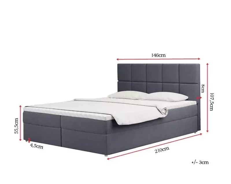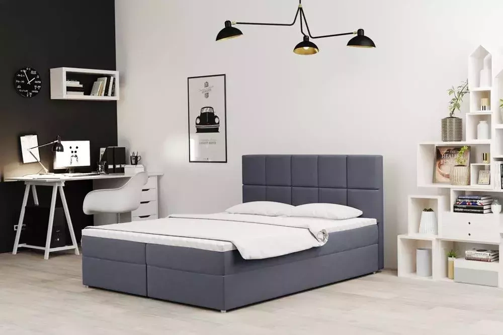 MEGAN Continental Bed er et forslag, der vil være perfekt til dig, hvis du værdsætter klassiske forslag, der vil fylde dit interiør med ubesværet elegance. Du vil forelske dig i den ved første blik takket være den solide base, hvorpå der er placeret en tyk madras, beriget med en top af polyurethanskum, som giver den enestående blødhed. Det hele suppleres af en smagfuld, quiltet sengegavl. Designet hviler på lave sølvben, der giver den en lidt mere moderne karakter.