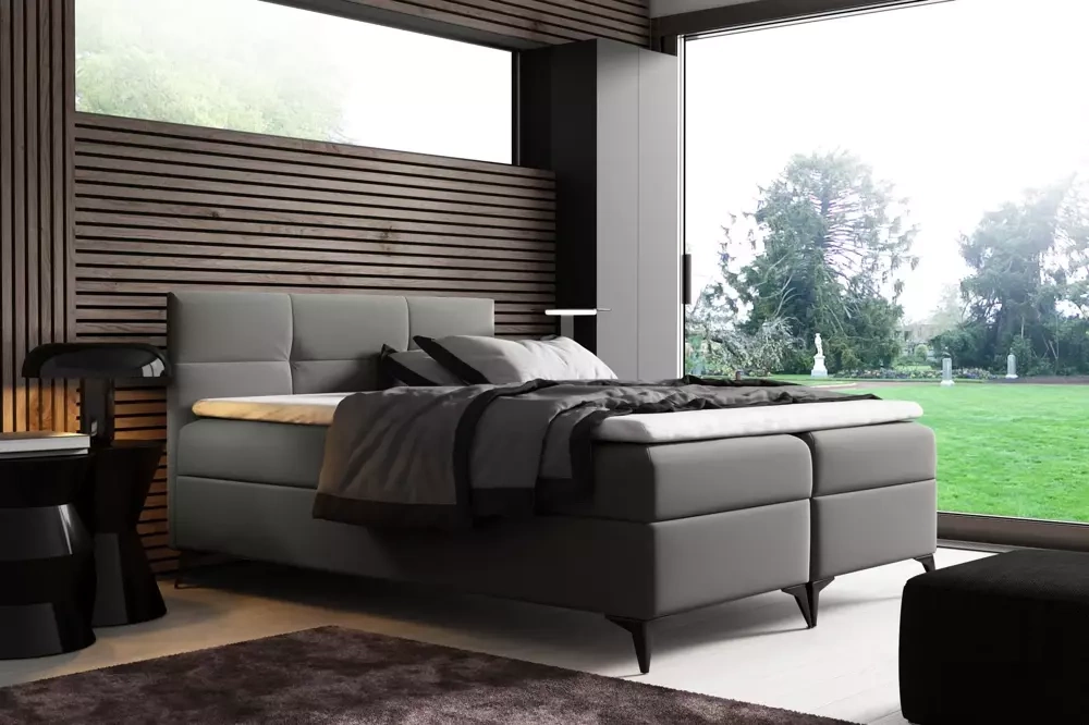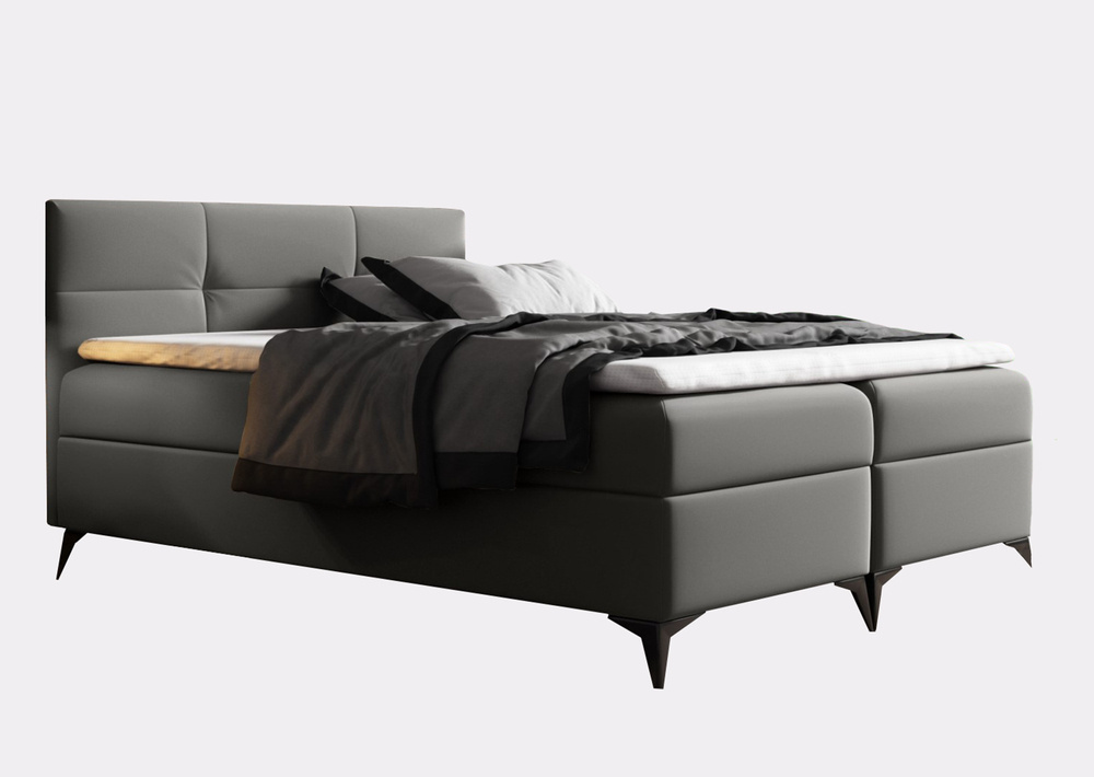 FIGARO kontinentalseng vil hjælpe dig med at introducere luksus til dit soveværelse, som indtil nu kun har været kendt fra de bedste femstjernede hoteller! Et så højt komfortniveau vil føre til en væsentlig forbedring af søvnkvaliteten, så du endelig kan hvile ordentligt. Denne stilfulde model har en høj, stilfuld sengegavl, der giver dig mulighed for at tage en behagelig stilling, mens du bruger din smartphone, bærbare computer eller læser din yndlingsbog. Seng med sengegavl imponerer med sit elegante, stilfulde design, der hjælper den effektivt med at oplive dit arrangement. Møblerne har en solid kassebund, hvor der er ikke mindre end 2 beholdere til sengetøj. En fredelig og sund søvn vil blive sikret af en bonell madras, kendetegnet ved høj holdbarhed og solid konstruktion. Disse elementer gør overfladen af produktet både blød nok til, at du kan ligge behageligt og hårdt nok, takket være det vil det hjælpe dig med at bevare den korrekte kropsholdning, mens du hviler. Sengen i sættet har en 5 cm topmadras, som også gør brugen af møblerne mere behagelig og samtidig beskytter overfladen mod snavs. Sengens konstruktion er baseret på spidse metalben, der giver en følelse af visuel lethed til hele kroppen. Den præsenterede model vil se godt ud i moderne værelser.