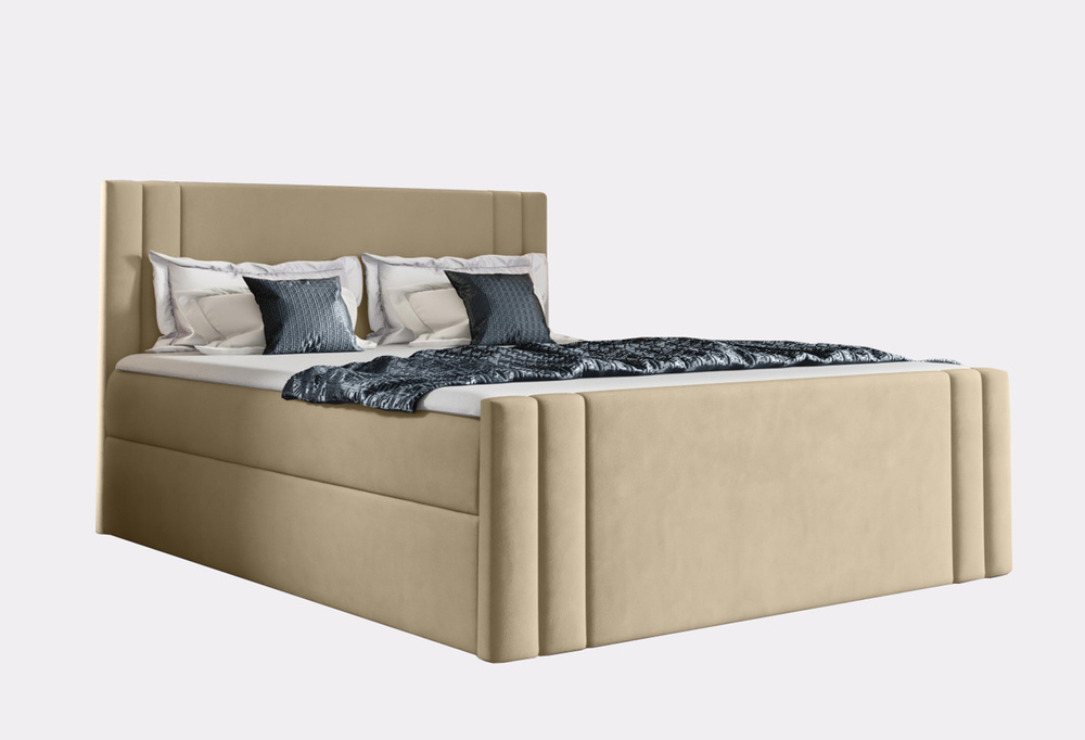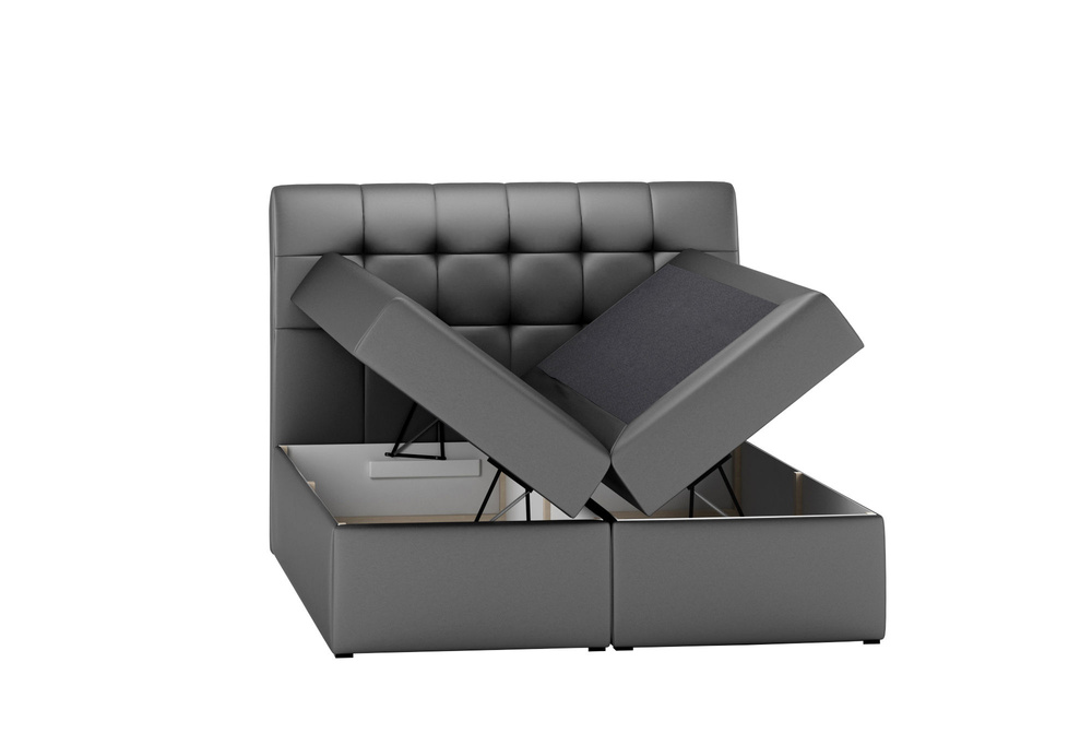 En seng med sengegavl er et tilbud til folk, der kan lide at slappe af i sengen. CARMEN modellen er udstyret med en dekorativt syet nakkestøtte beklædt med blødt skum. Tag din yndlingsbog med dig, se film eller arbejd på din bærbare computer. Nakkestøtten fungerer som rygstøtte, men beskytter samtidig væggen. Sengen er udstyret med 2 beholdere til sengetøj. Automatiske åbningshjælpemidler hjælper dig med nemt at løfte beholderne til opbevaring af sengetøj eller ekstra tæpper. Bundmadras med en højde på 20 cm, fyldt med bonell fjedre og T30 skum. Takket være denne konstruktion vil madrassen helt sikkert vinde dit hjerte med sin behagelige overflade, som samtidig vil kunne give den rette støtte til din krop. Det sidste lag er en topmadras lavet af 5 cm højelastisk skum.