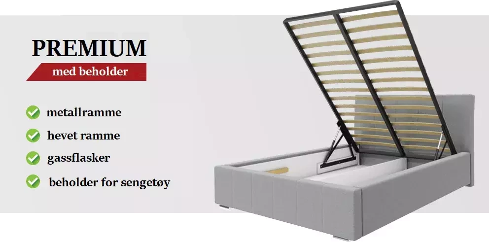 Den har en madrasramme, der er integreret med en sengebeholder.