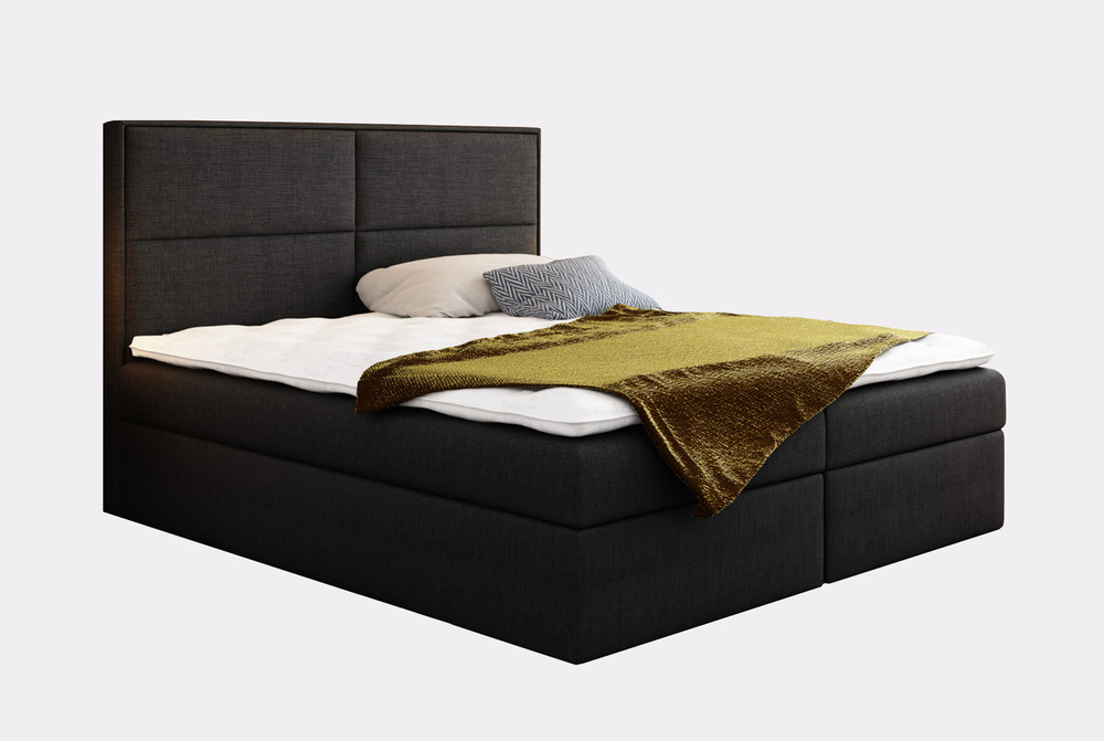 GRAND kontinentalseng vil hjælpe dig med at bringe luksus til dit soveværelse, som indtil nu kun har været kendt fra de bedste femstjernede hoteller! Et så højt komfortniveau vil føre til en væsentlig forbedring af søvnkvaliteten, så du endelig kan hvile ordentligt. Denne stilfulde model har en høj, stilfuld sengegavl, der giver dig mulighed for at tage en behagelig stilling, mens du bruger din smartphone, bærbare computer eller læser din yndlingsbog. Seng med sengegavl imponerer med sit elegante, stilfulde design, der hjælper den effektivt med at oplive dit arrangement. Møbler har en solid ramme med 2 beholdere til sengetøj. En fredelig og sund søvn vil blive sikret af en bonell madras, kendetegnet ved høj holdbarhed og solid konstruktion. Disse elementer gør overfladen af produktet både blød nok til, at du kan ligge behageligt og hårdt nok, takket være det vil det hjælpe dig med at bevare den korrekte kropsholdning, mens du hviler. Sengen i sættet har en 5 cm topmadras, som også gør brugen af møblerne mere behagelig og samtidig beskytter overfladen mod snavs. Den præsenterede model vil se godt ud i moderne værelser.