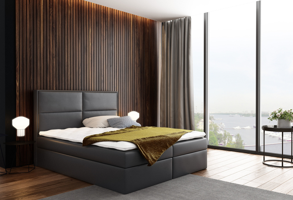 GRAND kontinentalseng vil hjælpe dig med at bringe luksus til dit soveværelse, som indtil nu kun har været kendt fra de bedste femstjernede hoteller! Et så højt komfortniveau vil føre til en væsentlig forbedring af søvnkvaliteten, så du endelig kan hvile ordentligt. Denne stilfulde model har en høj, stilfuld sengegavl, der giver dig mulighed for at tage en behagelig stilling, mens du bruger din smartphone, bærbare computer eller læser din yndlingsbog. Seng med sengegavl imponerer med sit elegante, stilfulde design, der hjælper den effektivt med at oplive dit arrangement. Møbler har en solid ramme med 2 beholdere til sengetøj. En fredelig og sund søvn vil blive sikret af en bonell madras, kendetegnet ved høj holdbarhed og solid konstruktion. Disse elementer gør overfladen af produktet både blød nok til, at du kan ligge behageligt og hårdt nok, takket være det vil det hjælpe dig med at bevare den korrekte kropsholdning, mens du hviler. Sengen i sættet har en 5 cm topmadras, som også gør brugen af møblerne mere behagelig og samtidig beskytter overfladen mod snavs. Den præsenterede model vil se godt ud i moderne værelser.
