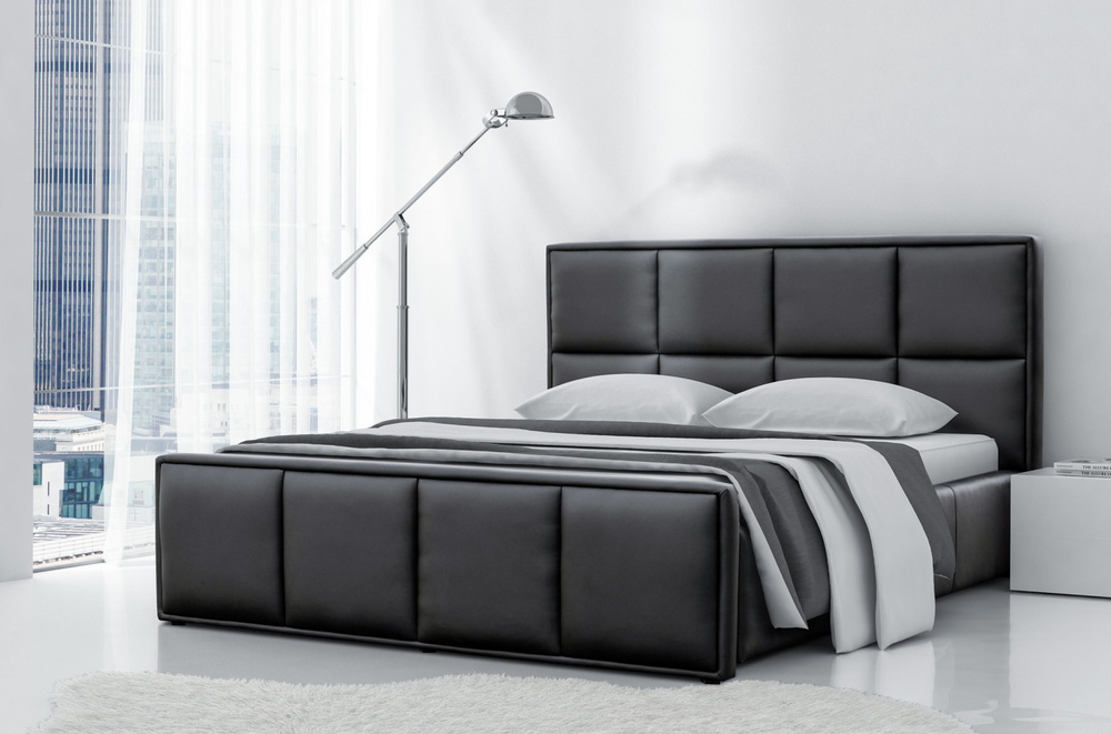 Den polstrede seng MILONGA er et perfekt valg for dem, der ønsker at nyde øjeblikke af afslapning i en behagelig seng. MILANGA-modellen har en imponerende syet nakkestøtte og sider, som er polstret med blødt skum. Denne dekorative sengegavl giver ikke kun behagelig rygstøtte, men beskytter også væggen mod potentielle skader. Den sorte seng er lavet af stof, der perfekt imiterer udseendet af naturligt læder. Den største fordel ved dette materiale er dets holdbarhed, så vi behøver ikke bekymre os om revner. Materialet føles meget tæt på naturligt læder. Vi kan sagtens rengøre en seng lavet af sådan et stof med milde møbelplejeprodukter. Derudover er sengen med sengegavl udstyret med en rummelig sengebeholder. Takket være gasliften er det nemt og problemfrit at løfte beholderen, så du kan opbevare sengetøj eller ekstra tæpper.