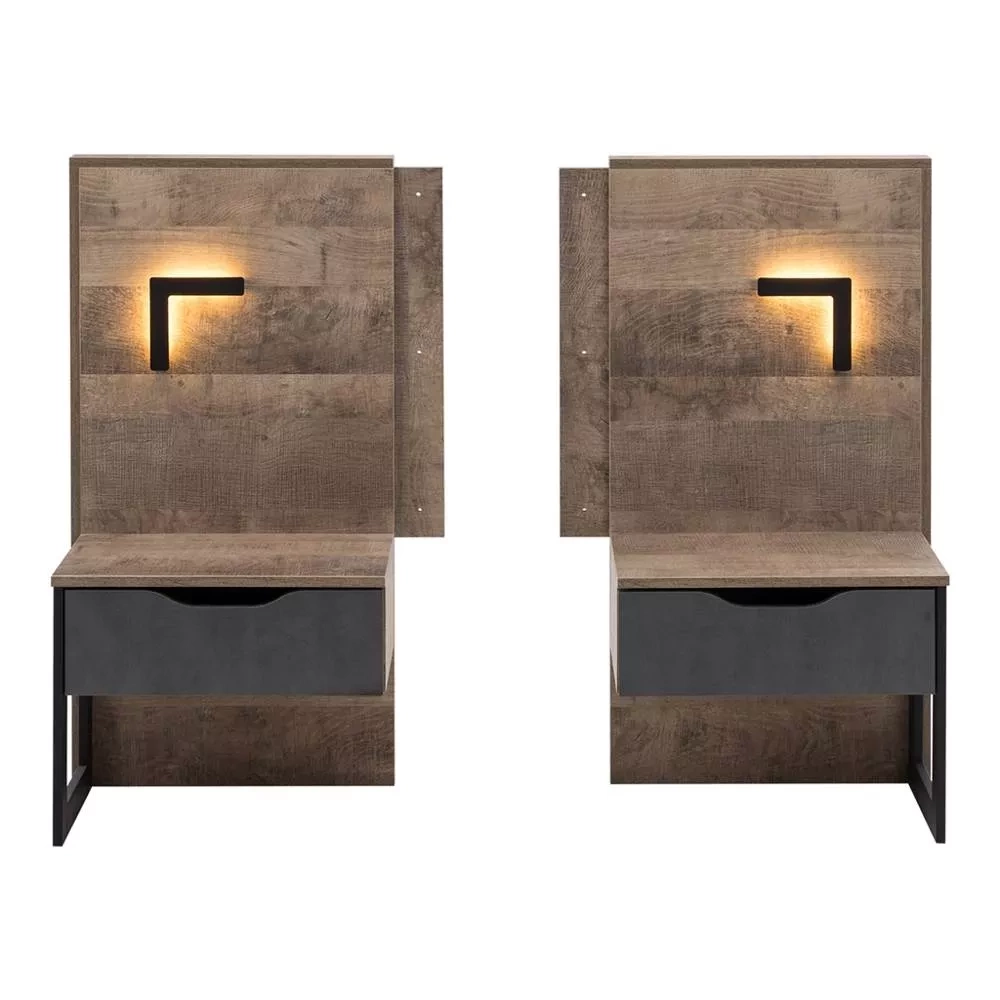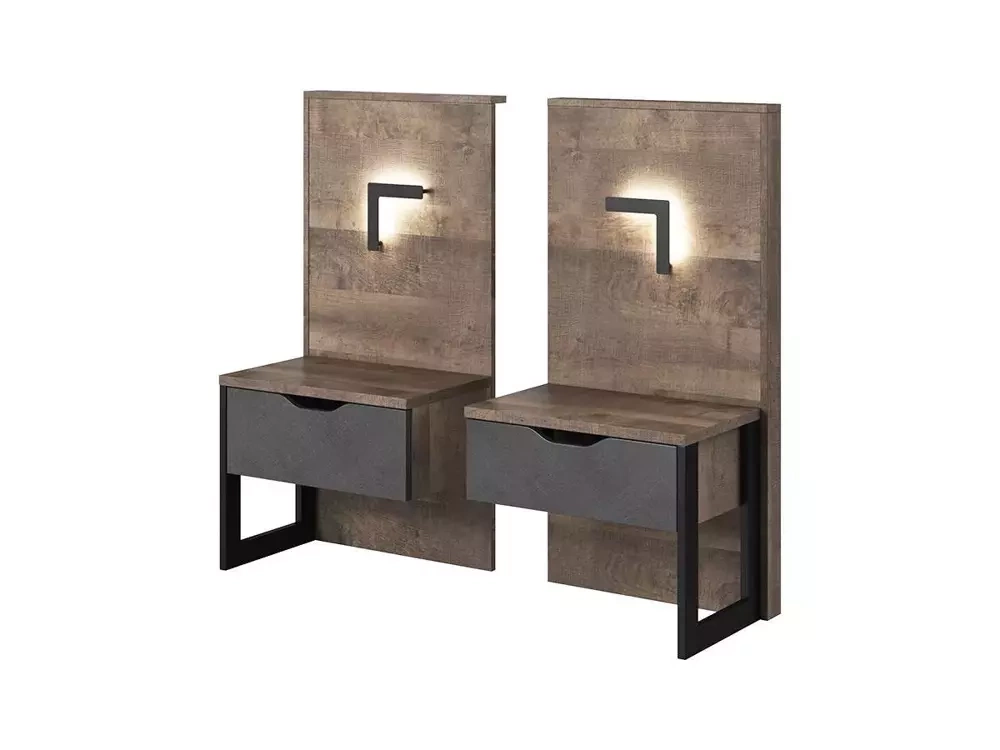 Skabene har LED-belysning som standard, takket være hvilket du ikke kun kan tilbringe aftenen i behageligt lys, men også bringe en romantisk atmosfære til soveværelset, hvilket understreger interiørets unikke loftstil.