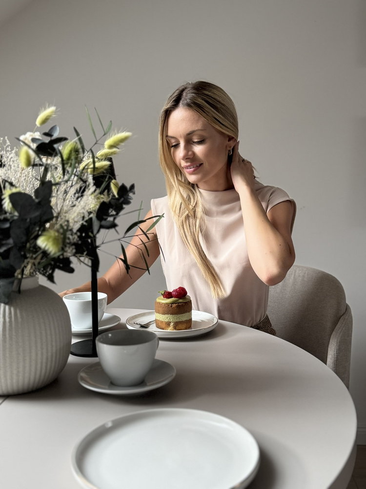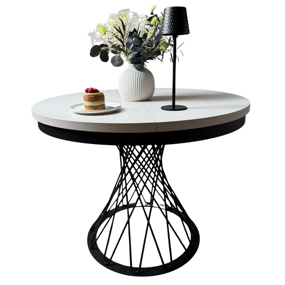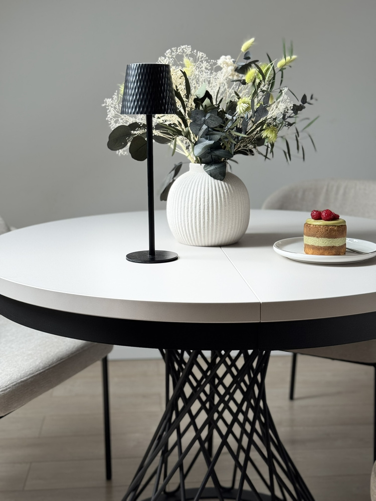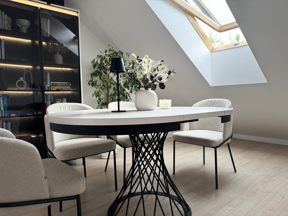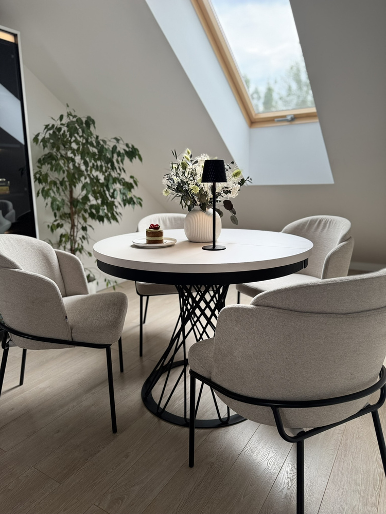 Forestil dig en aften ved stearinlys. En vase med en minimalistisk komposition, stille musik i baggrunden, en kop te. Dette bord bliver baggrunden for dine ritualer – om morgenen og om aftenen. Når gæsterne kommer, er det nok med et enkelt håndgreb, og den runde bordplade kan udvides til 140 cm, så der nemt er plads til 6 personer. Og til daglig brug? Den tager ikke meget plads og passer perfekt ind i stuen, spisestuen eller det moderne køkken.