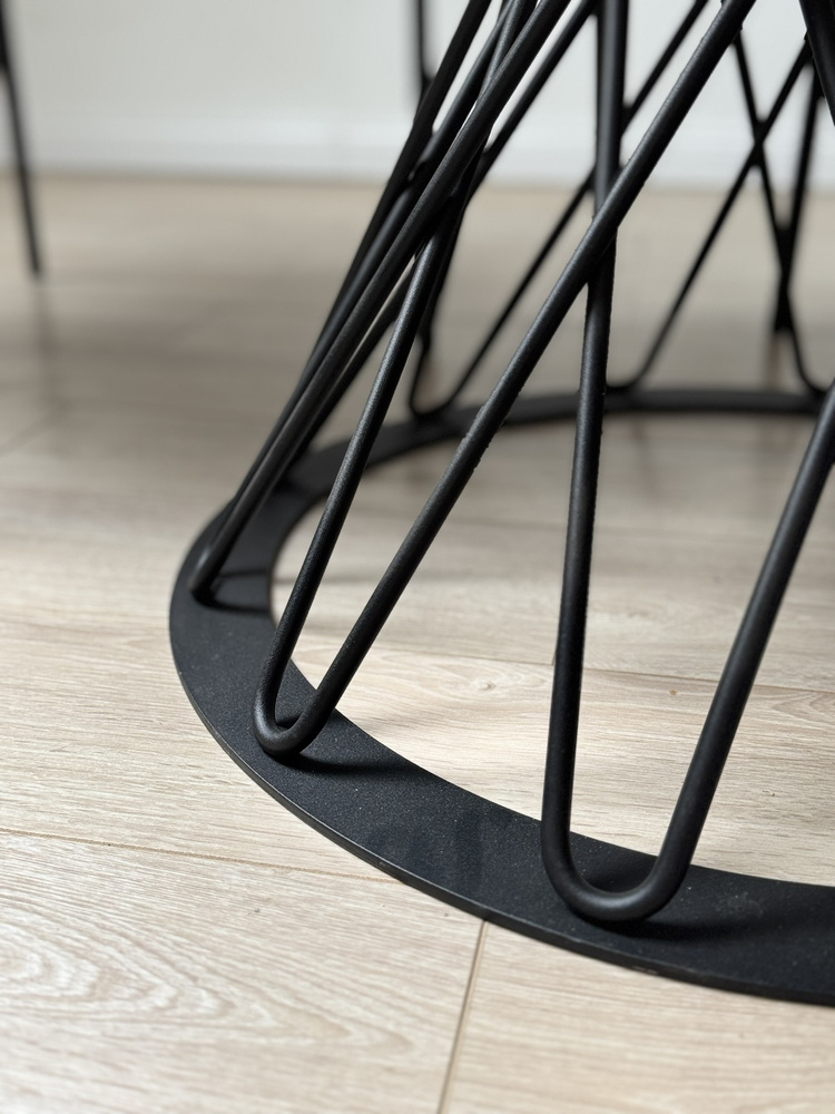 Et unikt element ved Gardino-bordet er dets metalliske, åbne understel i sort – ikke kun stabilt og solidt, men også yderst dekorativt. Den geometriske form tilføjer interiøret lethed og designkarakter. Bordet passer perfekt til polstrede stole, især i lyse nuancer af beige, grå eller moderne træbøjle stole.