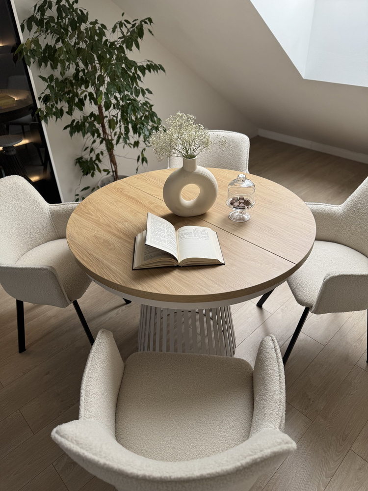 ALEXANDER er den perfekte løsning til køkkenet, spisestuen eller stuen, hvor du møder dine gæster til kaffe eller middag. Bordet med den runde plade er et gennemtænkt produkt i enhver henseende. Når det er foldet sammen, kan det nemt rumme 4 personer, og takket være foldefunktionen kan du hurtigt forberede et sted til en større samling af familie eller venner. Bordpladen har en diameter på 100 cm og er lavet af lamineret plade. Den ekstra fordel er, at du på få minutter nemt kan forlænge den fra 100 cm til 140 eller endda 180 cm ved at montere ekstra indsatser. Det tager kun et øjeblik at øge bordpladens overfladeareal, når du har brug for mere plads, eller at folde den sammen, når pladsen kræver en mere kompakt løsning. Derfor er det perfekt til en lille spisestue eller en stue, der ligger i forbindelse med køkkenet.