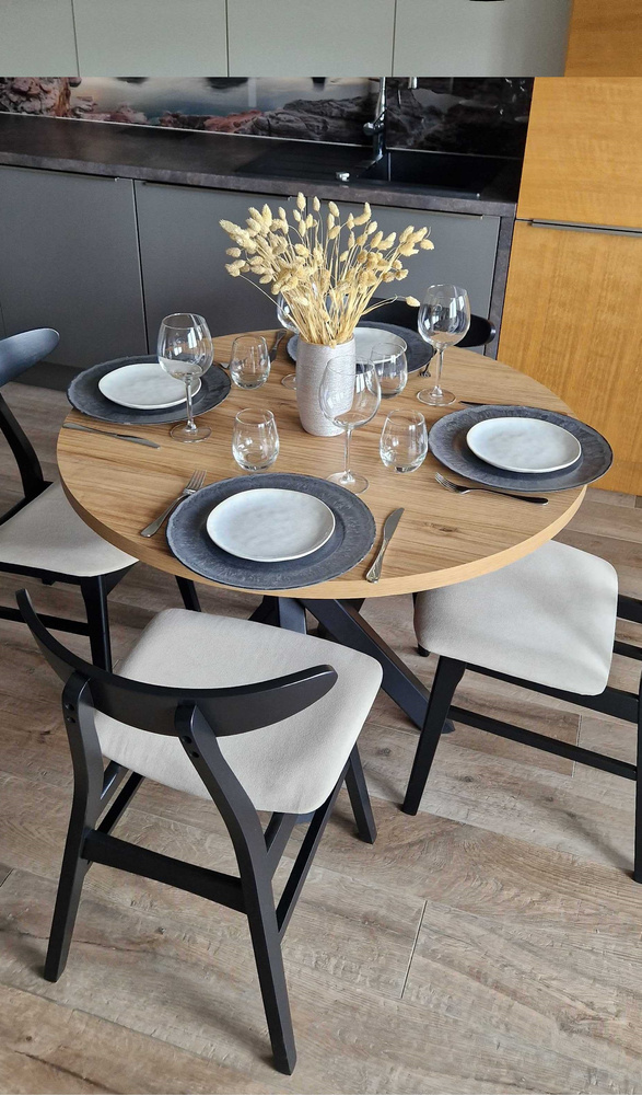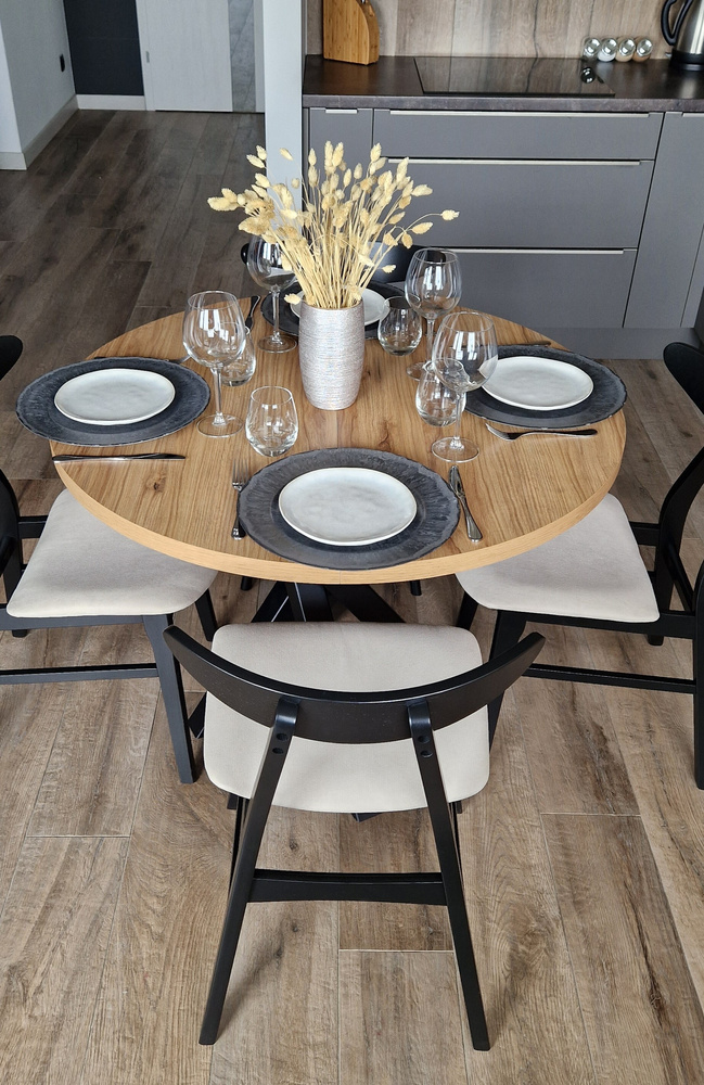 EDWARD-udtræksbordet vil takket være dets små dimensioner være perfekt til en lille spisestue, køkken eller stue. På få minutter kan du nemt folde den ud fra 100 cm til 140 ved at montere ekstra indsats. Takket være dette behøver du ikke bekymre dig om, hvor dine gæster skal sidde. Denne model er blevet beriget med en 5 cm stilfuld ring under toppen, takket være hvilken guiderne er dækket, og det hele ser elegant ud.