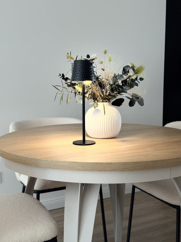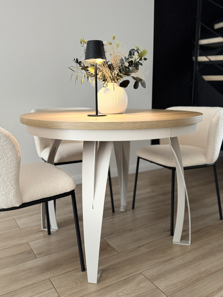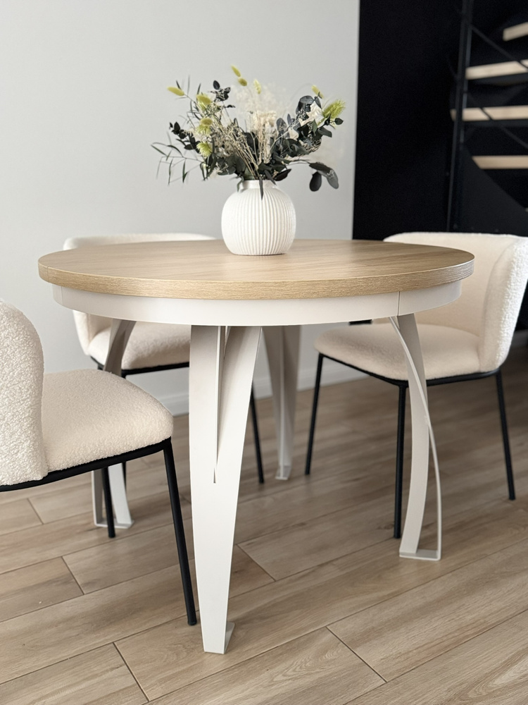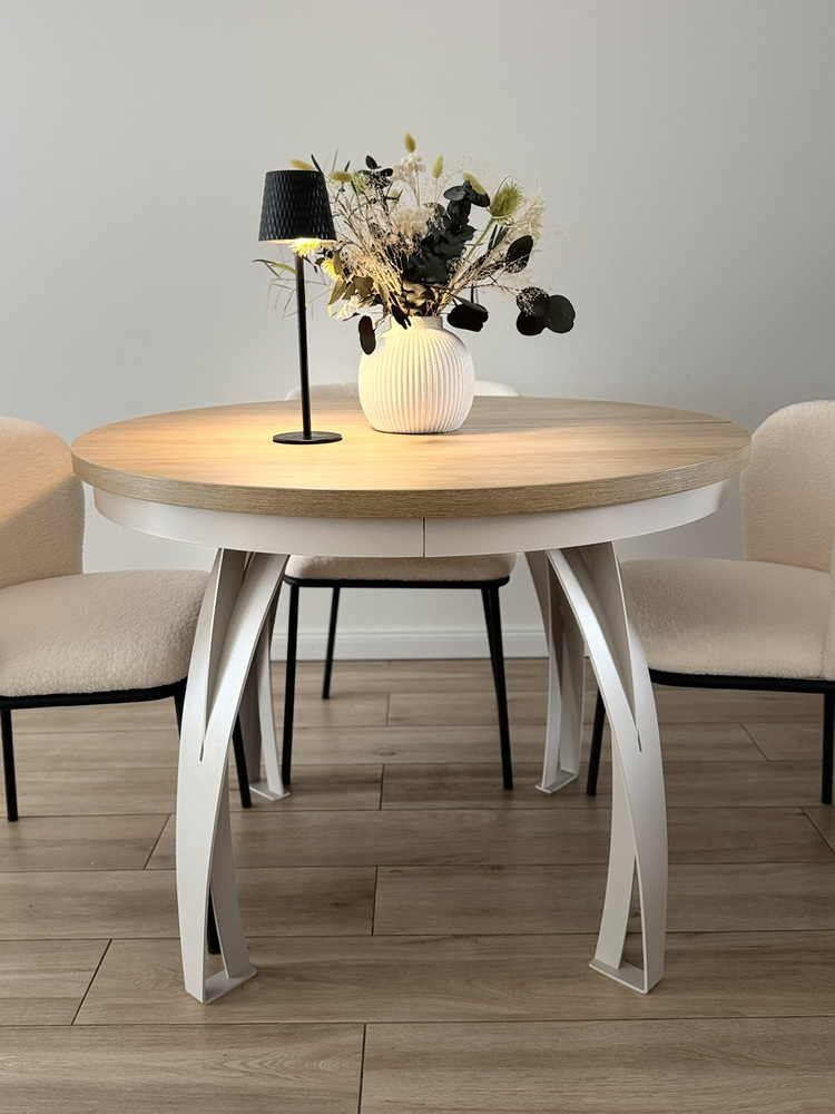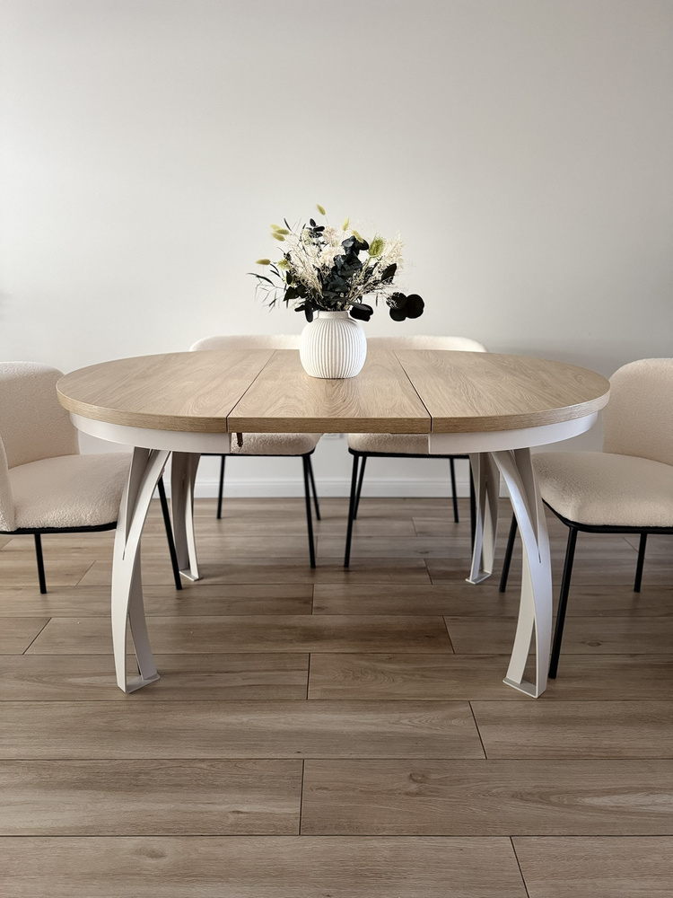 Det udtrækkelige bord BUENO er med sine beskedne dimensioner perfekt til en lille spisestue, køkken eller stue. På få minutter kan du nemt udvide den fra 100 cm til 140 eller endda 180 cm ved at montere ekstra indsatser. Så behøver du ikke bekymre dig om, hvor du skal placere dine gæster. Denne model er udstyret med en stilfuld ramme under bordpladen, der dækker skinnerne og giver et æstetisk og elegant udseende.