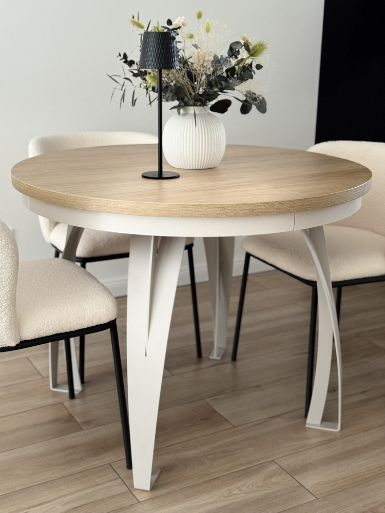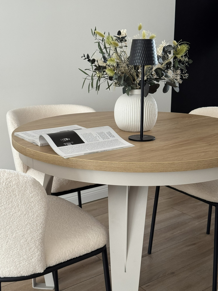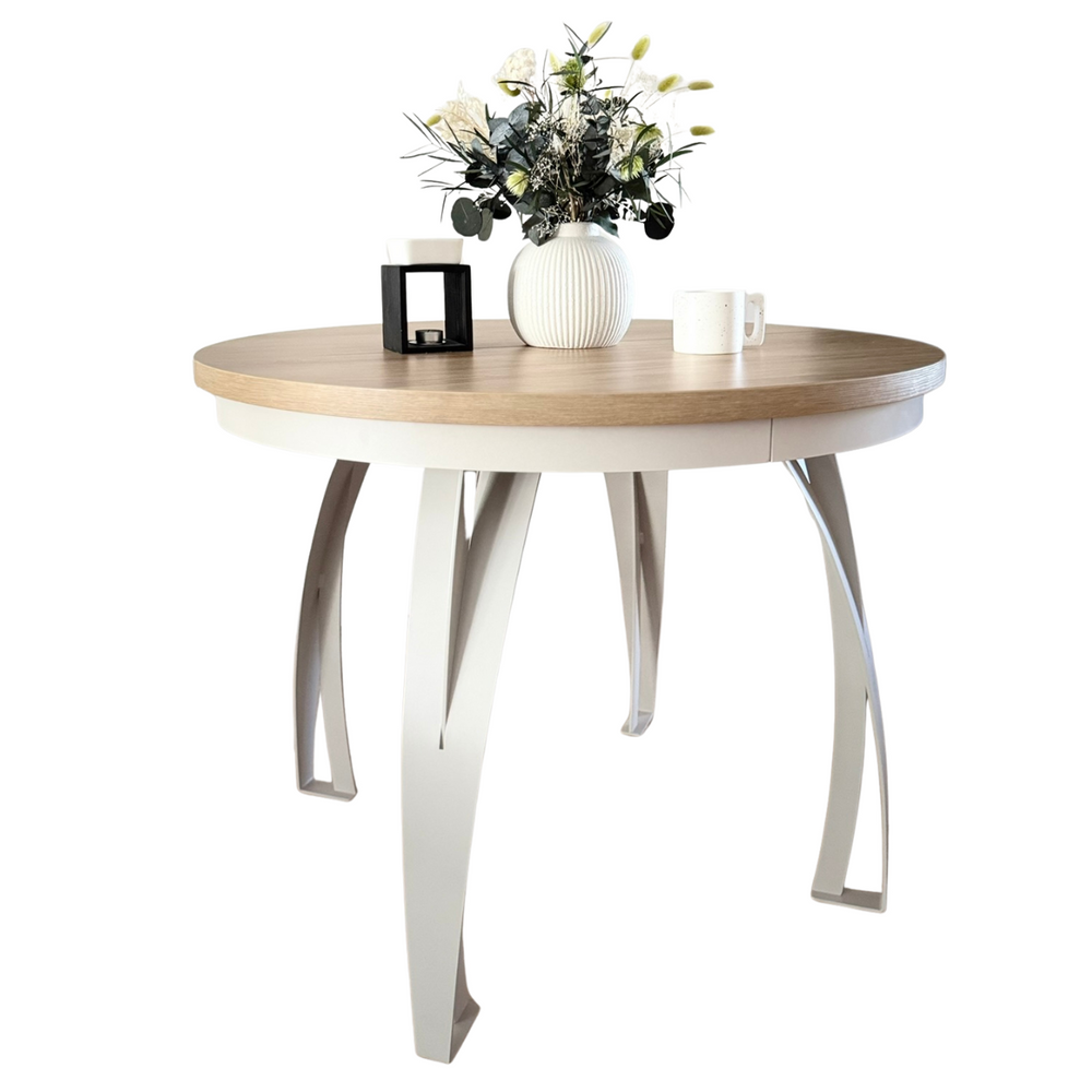 Rundt udtræksbord til spisestuen, 100-180 cm, kashmir/hikora eg BUENO