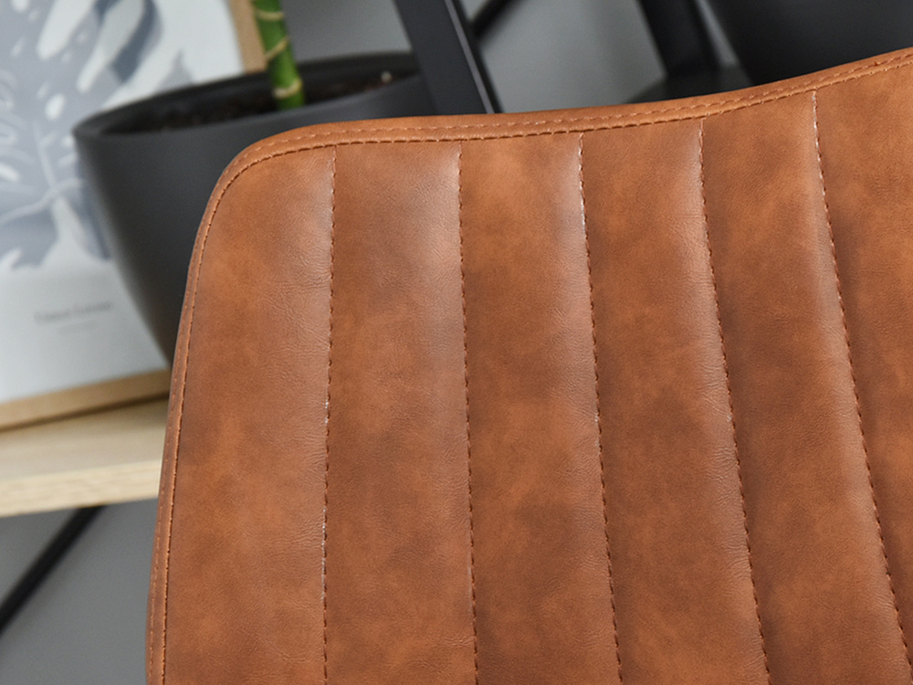 HARIS-stolen er den perfekte kombination af elegance og funktionalitet, som passer perfekt ind i den industrielle stil og moderne. Takket være brugen af økologisk læder i brun, ser stolen ikke kun stilfuld ud, men er også miljøvenlig. De sorte metalben giver karakter og stabilitet, hvilket gør den til det perfekte valg til en række forskellige indretninger.