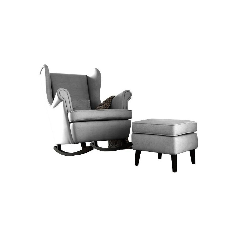 Grå gyngestol med fodskammel sæt DALIA