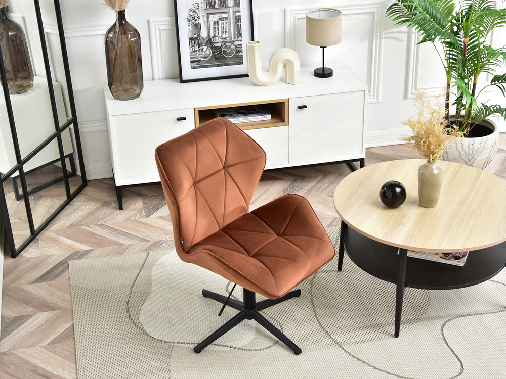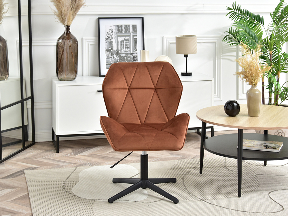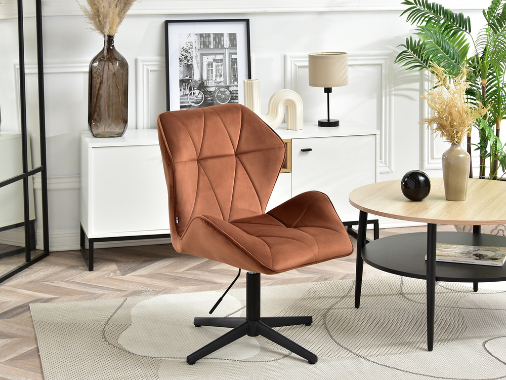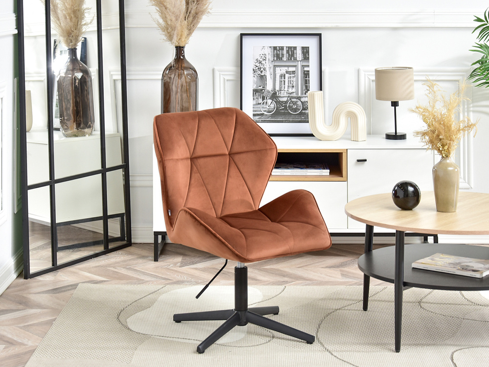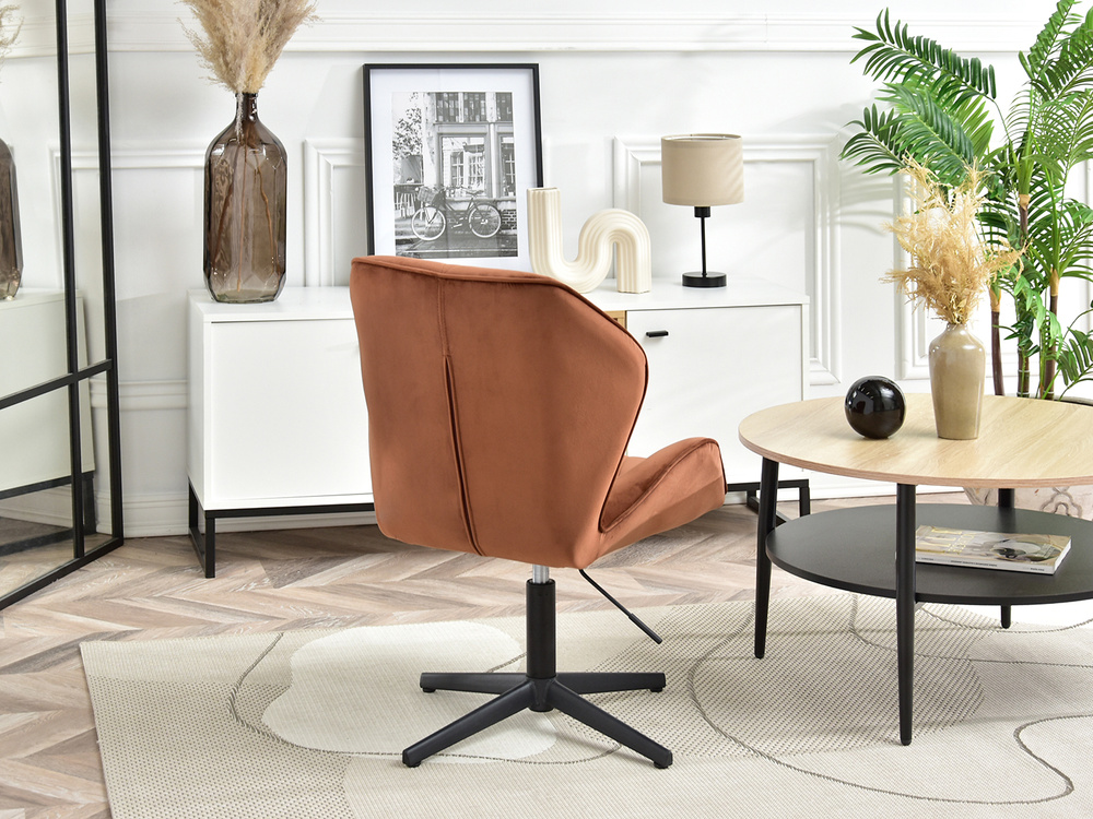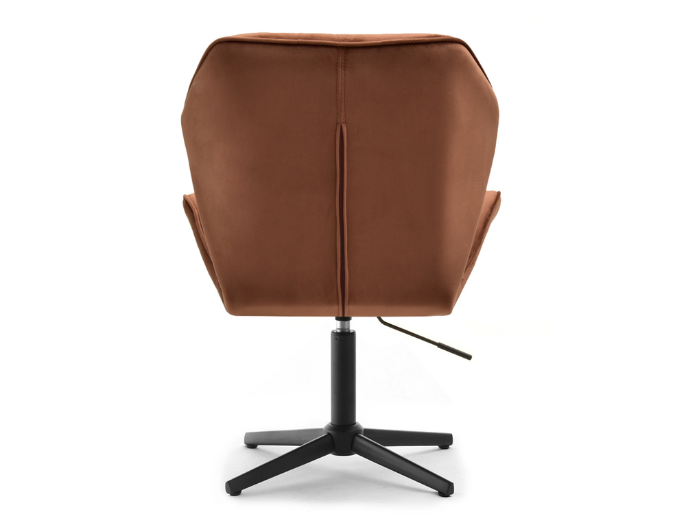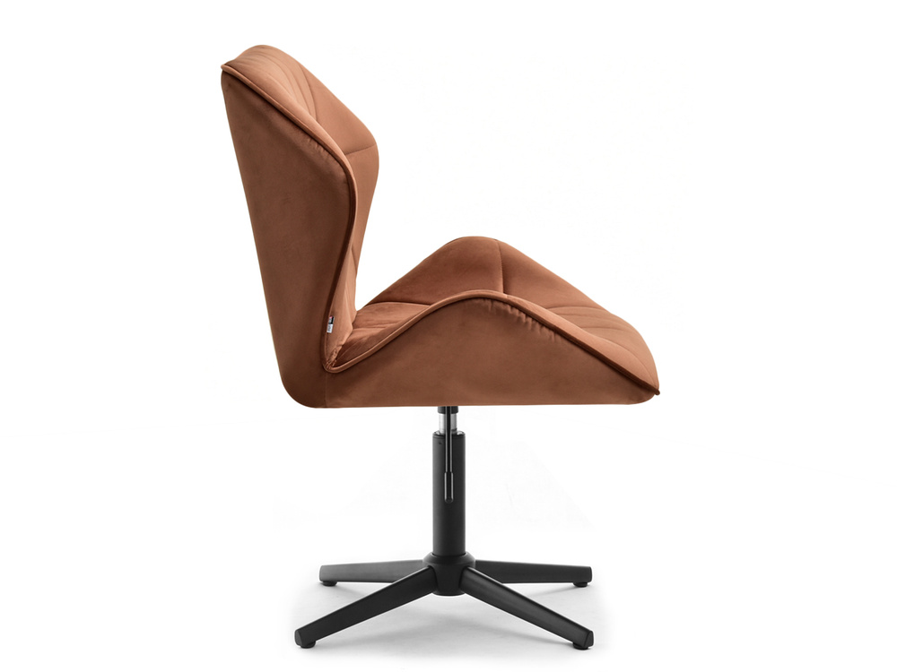VELO-STATIC-lænestolen i kobbervelour er en perfekt kombination af elegance og funktionalitet, som passer perfekt ind i den moderne indretningsstil. Dets drejelige sæde og højdejusterbar giver komfort ved at tilpasse sig brugerens individuelle behov.