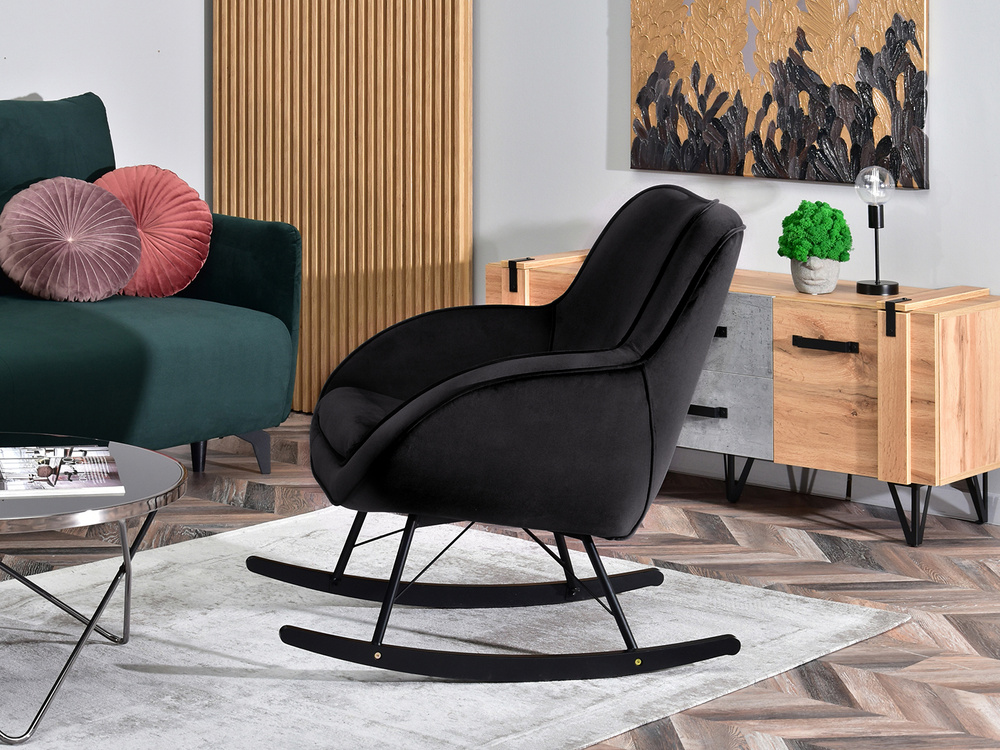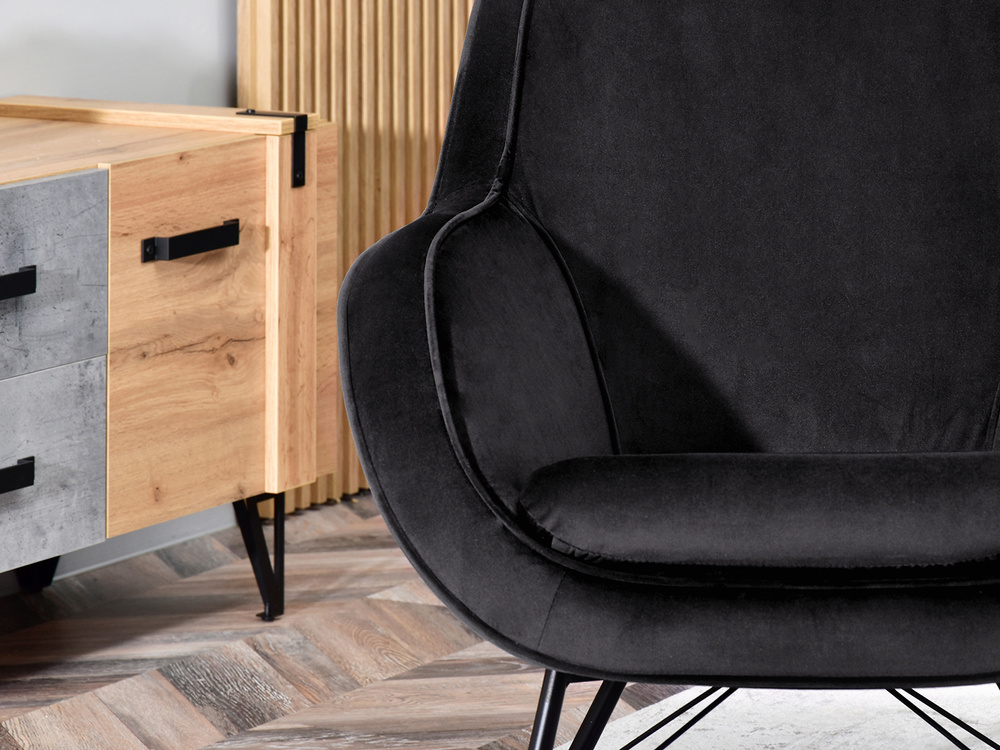 COCO-lænestolen i sort velour er den perfekte kombination af elegance og funktionalitet, som vil passe perfekt ind i enhver indretning. Takket være sit moderne design i industriel stil, denne lænestol bliver ikke kun et praktisk møbel, men også en dekoration til dit hjem.
