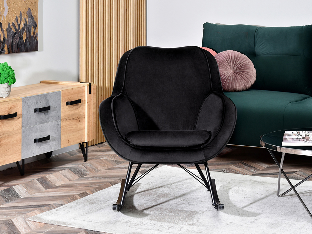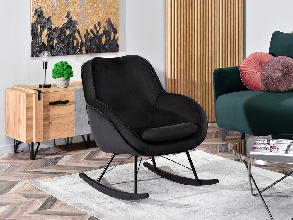 COCO-lænestolen er ikke kun et møbel, men også en måde at skabe et hyggeligt afslapningshjørne på. Dens sorte farve i moderne stil gør den velegnet til en række forskellige indretninger, fra minimalistisk til mere sofistikeret. Takket være ergonomisk form i blødt polstringsskum, lænestolen giver komfort på højeste niveau.
