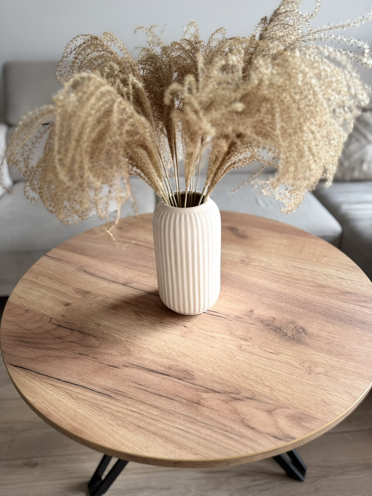 Takket være den 18 mm tykke plade og 2 mm tykke PVC-finer er bordet ikke kun æstetisk, men også meget praktisk. Dens ben lavet af 2x2 cm profiler sikrer stabilitet og selvtillid under brug. Bordpladen med en diameter på 75 cm giver plads nok til komfortabelt at drikke din eftermiddagskaffe.