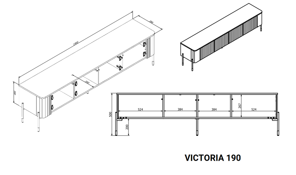 Det sorte VICTORIA tv-skab er et stilfuldt møbel med et moderne twist. Hvis du er en person, der kan lide innovativ styling og ønsker, at dit hjem skal skille sig ud fra andre standardindretninger, er dette møblet for dig. Victoria RTV-skabet er indbegrebet af stil og funktionalitet. Den sorte farve, de afrundede sider og de høje, slanke ben passer perfekt ind i de nyeste indretningstendenser og giver møblet et let og moderne udtryk.